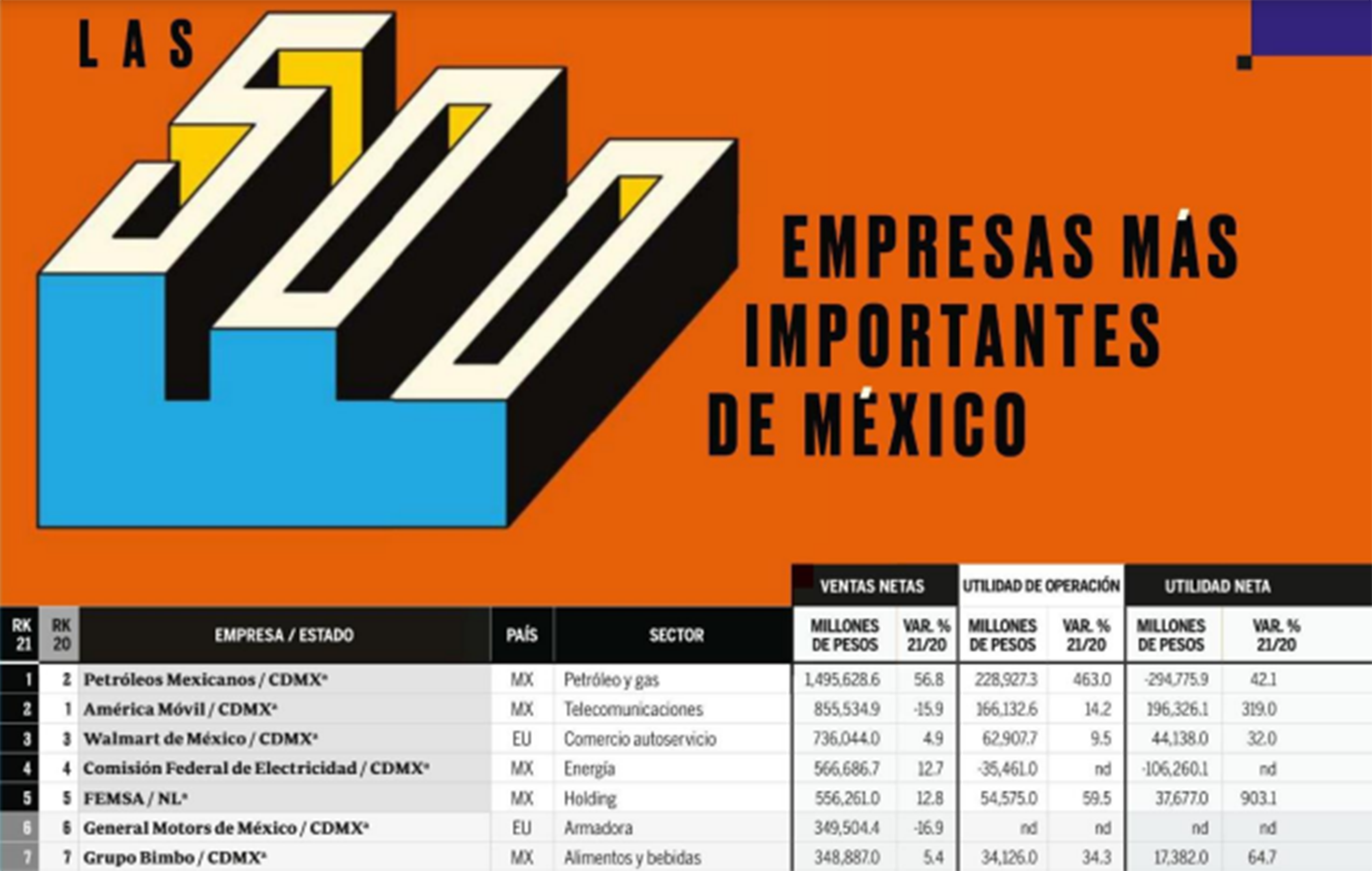 “Las 500 empresas más importantes de México” es un listado que considera a compañías con fines de lucro, entidades que ofrecen un bien o servicio y que reportan ingresos o ventas.
