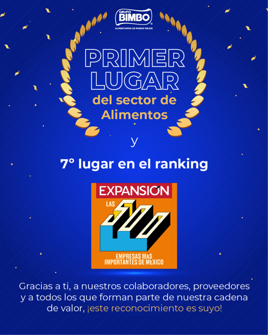 Como se puede ver, en el famoso listado que la revista Expansión realiza de manera periódica, se puede observar a Grupo Bimbo en el lugar 7, solo detrás de Petróleos Mexicanos, América Móvil, Walmart de México, Comisión Federal de Electricidad, FEMSA y General Motors de México.