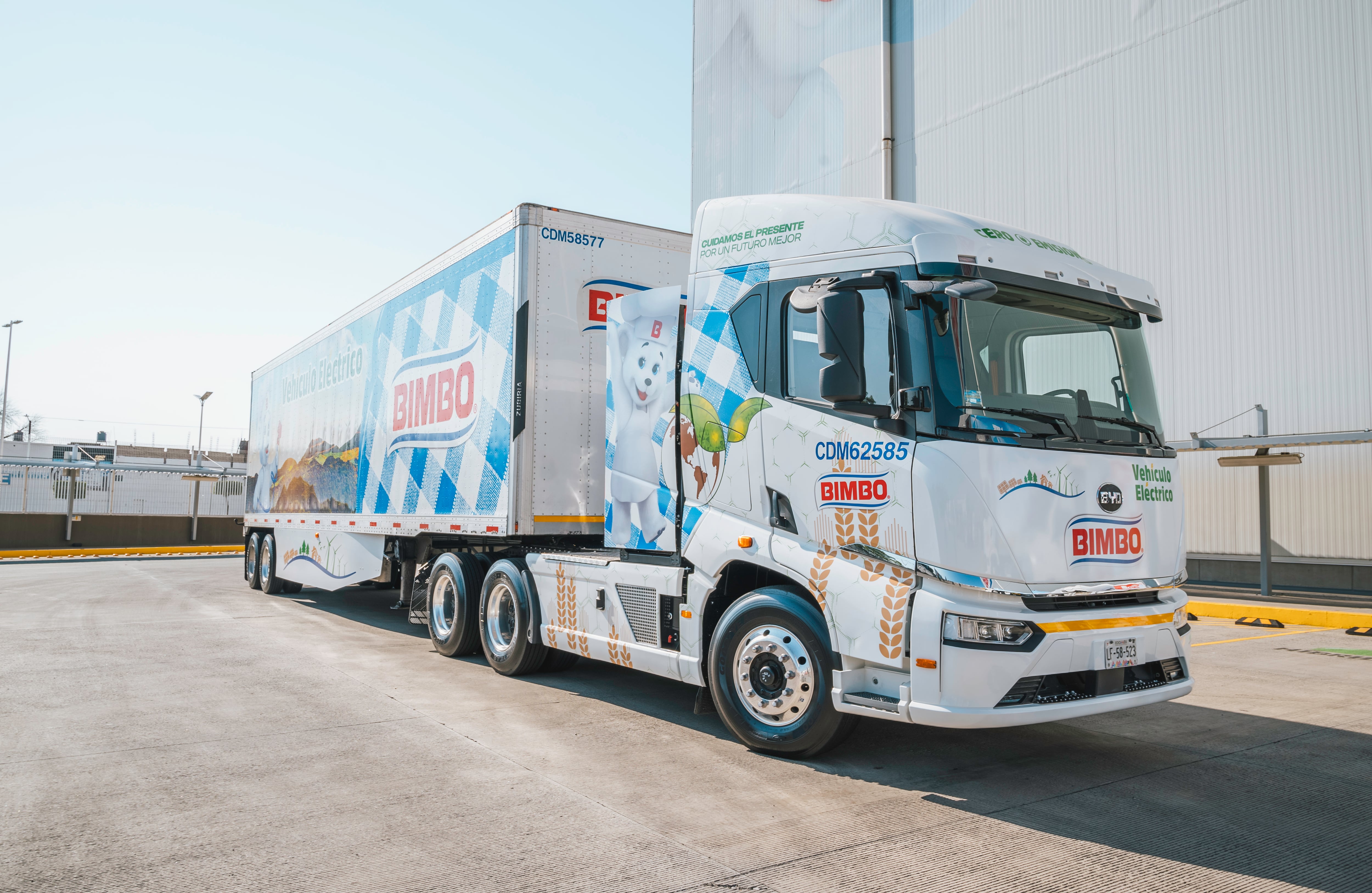 - 6 tractocamiones marca BYD, que serán los primeros vehículos eléctricos de distribución primaria para Grupo Bimbo. Estas unidades tienen la más avanzada tecnología en baterías, volviéndose muy confiables en cuanto a seguridad y rendimiento. Pueden recorrer hasta 240 km y tienen sistemas de seguridad activa y pasiva como control de estabilidad, advertencia de colisión frontal, frenado automático de emergencia y detección de punto ciego lateral.