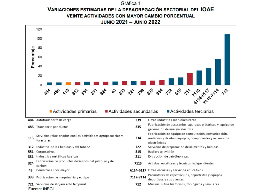 Con base al reporte del Inegi estas son las actividades secundarias y terciarias donde se incrementaron los empleos formales a tasa anual en la versión desagregada sectorialmente del Indicador Oportuno de la Actividad Económica (IOAE):