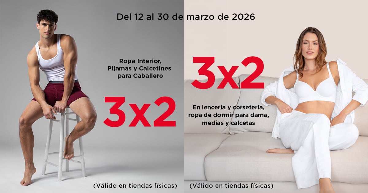 Además, la promoción al 3x2 incluye ropa interior, pijamas y calcetines para dama y caballero, así como lencería y corsetería, esos básicos que siempre se agradece renovar cuando cambia la temporada.