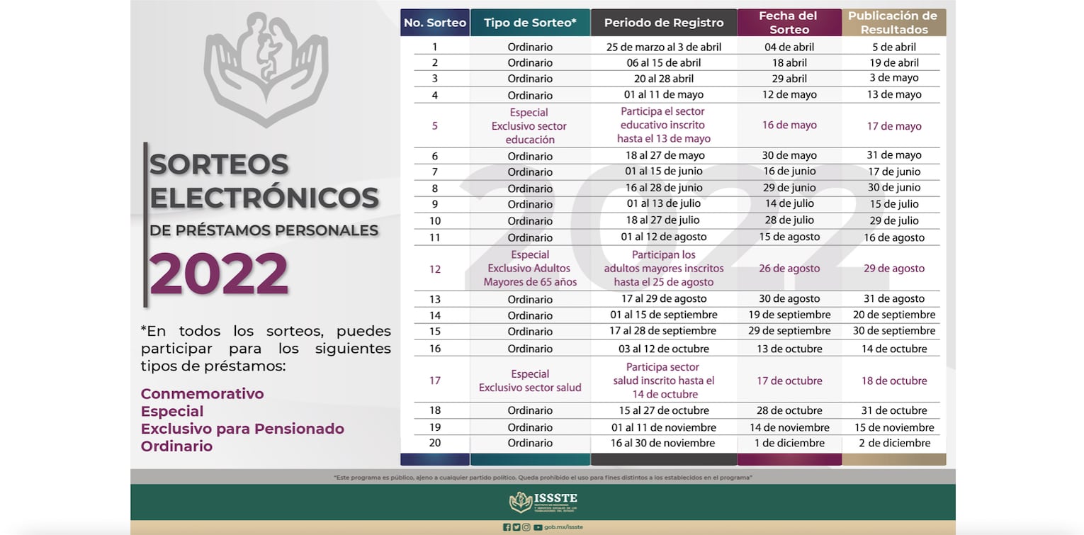 Los sorteos del ISSSTE para préstamos personales se llevarán a cabo a lo largo del 2022; sin embargo, hay que estar atentos a las fechas.