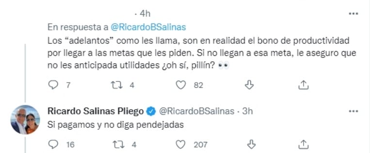 Fiel a su estilo, Ricardo Salinas Pliego insistió en negar las acusaciones y en algunos casos, se lanzó con insultos en contra de los usuarios de redes sociales.