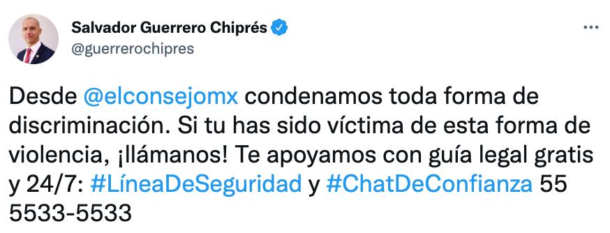 A través de una tarjeta informativa, aclaró que se atenderán las quejas en términos de la Ley para Prevenir y Eliminar la Discriminación de la CDMX, con el objetivo de lograr la no repetición.