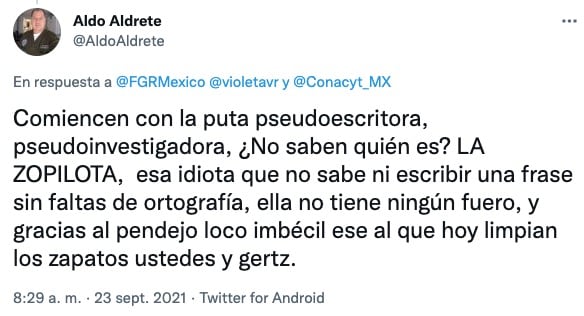 No estoy de acuerdo en la formas, en el insulto y repruebo el odio con el que fue escrito ese tuit; no creo que haya sido un mensaje aceptable pero de ahí a que el propio presidente lo usara para señalarlo en una especie de venganza o amenaza me parece reprobable.