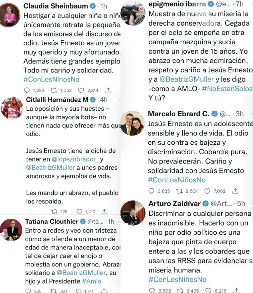 Cuarto, fueron políticos relevantes de la 4T quienes desataron el alboroto, que sobre todo en Twitter fue muy fuerte y sin duda ofensivo con el menor. Menciono cuatro, pero fueron muchos más: el ministro presidente de la SCJN, Arturo Zaldívar; el secretario de Relaciones Exteriores, Marcelo Ebrard; la jefa de gobierno de la CDMX, Claudia Sheinbaum, y el dirigente de Morena, Mario Delgado.