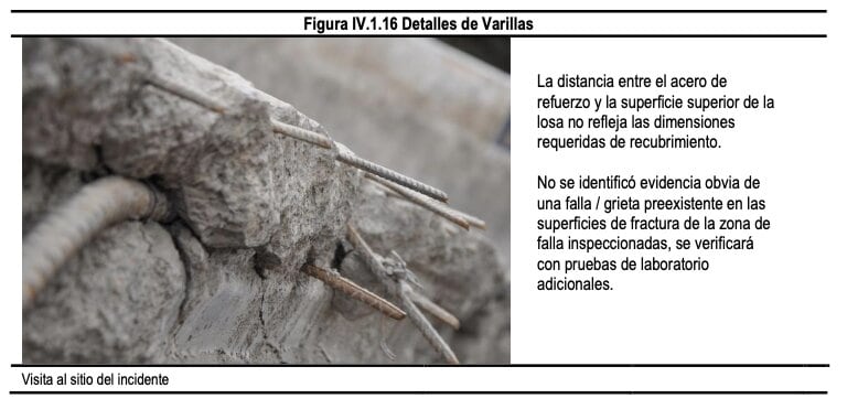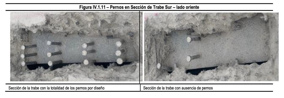 Toda la Línea 12 del Metro, según se lee en el dictamen es que está terriblemente mal hecha. Nada coincide con los planos, los pernos no están bien puestos, se pusieron parches con otro concreto, las distancias entre las varillas y su enlace con la losa no iban con el plano.