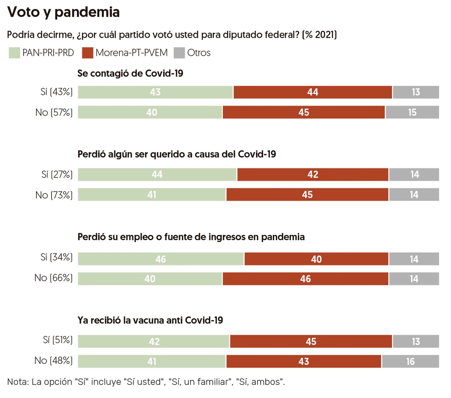 Las personas que más votaron por Morena fueron los mayores de 50 años, y la mayoría de los sufragistas jóvenes –entre 18 y 24 años– eligieron también votar por la izquierda, siendo estos últimos los que representaba el 10% de los votantes el pasado 6 de junio. También, la encuesta señala que hubo menos abstencionismo entre los apartidistas y más ciudadanos con ideología de centro-derecha que ejercieron su sufragio.