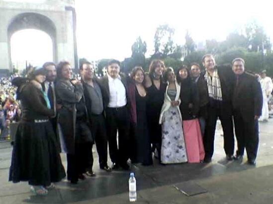 Mucho antes, en la primera semana de agosto de 2006, prolongaba y expandía yo el agudo final de la canción “Villahermosa”, de Manuel Pérez Merino, que resonaba en la gran Plaza de la República, cuando subió al estrado la soprano Regina Orozco –cercana a Jesusa Rodríguez- con su sonrisota característica, “dice Andrés Manuel que están cantando bonito”. Nos agradó el mensaje a la soprano Victoria Zúñiga, al pianista Héctor Cruz y a mí, quienes hacíamos el primer concierto de corte clásico/operístico inaugurando este tipo de música en el plantón del Zócalo contra el fraude de 2006. Días después lo replicaron otros grupos de cantantes que diversificaron el apoyo a la causa hasta culminar en el concierto en el Monumento a la Revolución el 21 de agosto; yo cantaría un total de 8 presentaciones; 3 en el Zócalo, 3 en el Hemiciclo a Juárez, 1 en ex Glorieta a Colón y el magno final. (Jaime Avilés da cuenta del momento en el texto “Surgen coro de pejeviejitos antitanquetas y el ‘monumento a la revolución pacífica’”.)