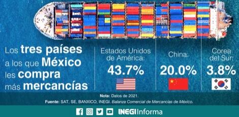 En 2021, el valor de las importaciones de México fue de 506 mil millones de dólares, y los productos importados provienen principalmente de tres países.