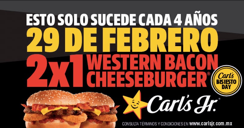 Todo está listo para celebrar este gran día que sólo sucede cada cuatro años, festeja el Bisiesto day con Carl’s Jr. y recompénsate por todo el trabajo que haces a diario, te lo mereces. ¡Que ya sea 29 de febrero!