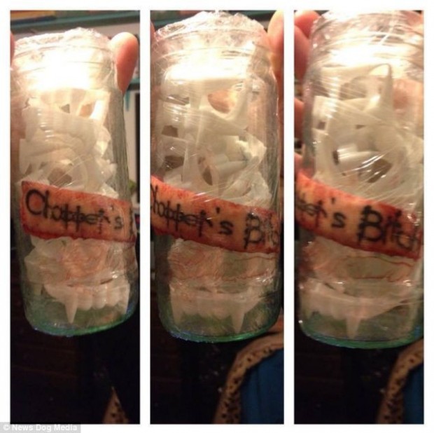 Pedazo de piel enviado a Stuart con la frase "Chopper's Bitch":