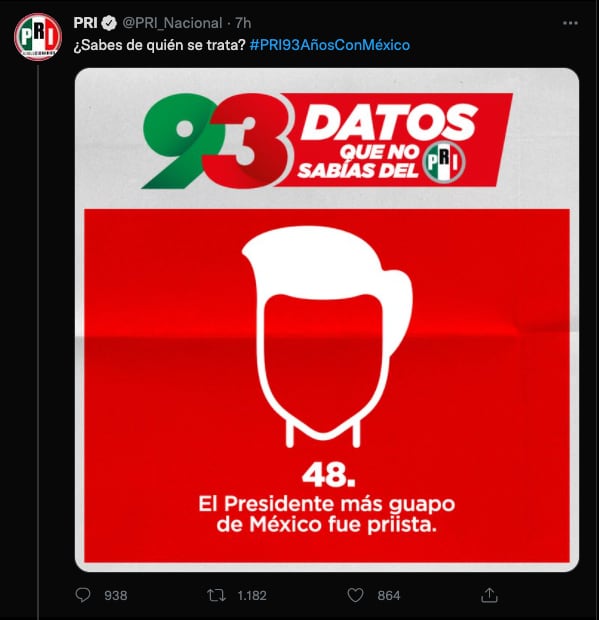 “Dato 48. El presidente más guapo de México fue priista. ¿Sabes de quién se trata?”, escribieron junto a la silueta de Enrique Peña Nieto.
