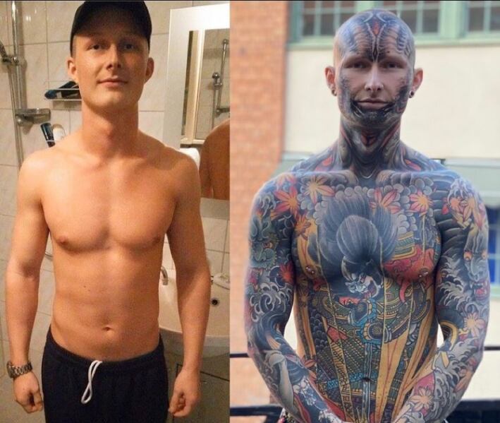 Un joven que cubrió el 95 por ciento de sus con tatuajes ha recibido ha recibido comentarios positivos por parte de los internautas que alaban su transformación.