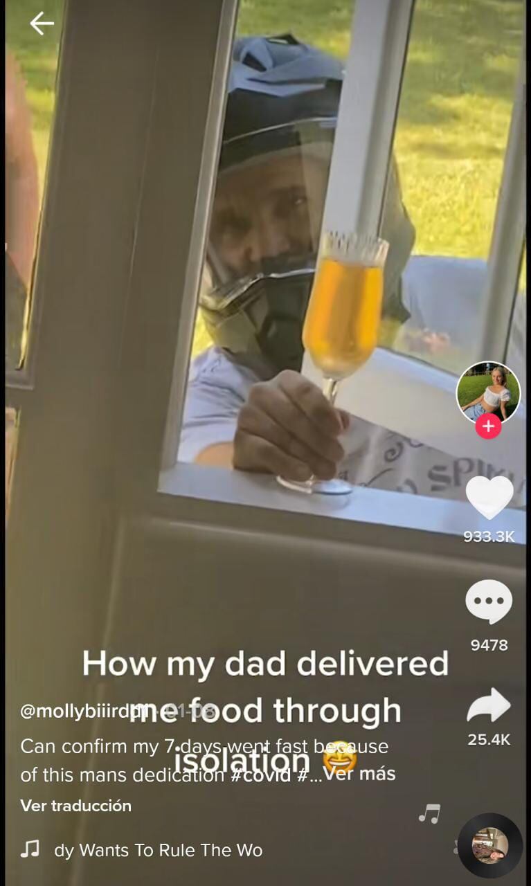 Con disfraces y manteniendo sana distancia, el papá de Molly le llevaba comida hasta la puerta de su habitación y el gesto se hizo viral en TikTok.