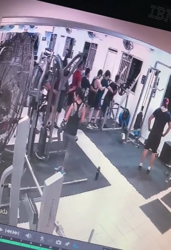 En la grabación, captada desde cámaras de seguridad de un gimnasio, se aprecia a varias personas haciendo ejercicio tranquilamente.