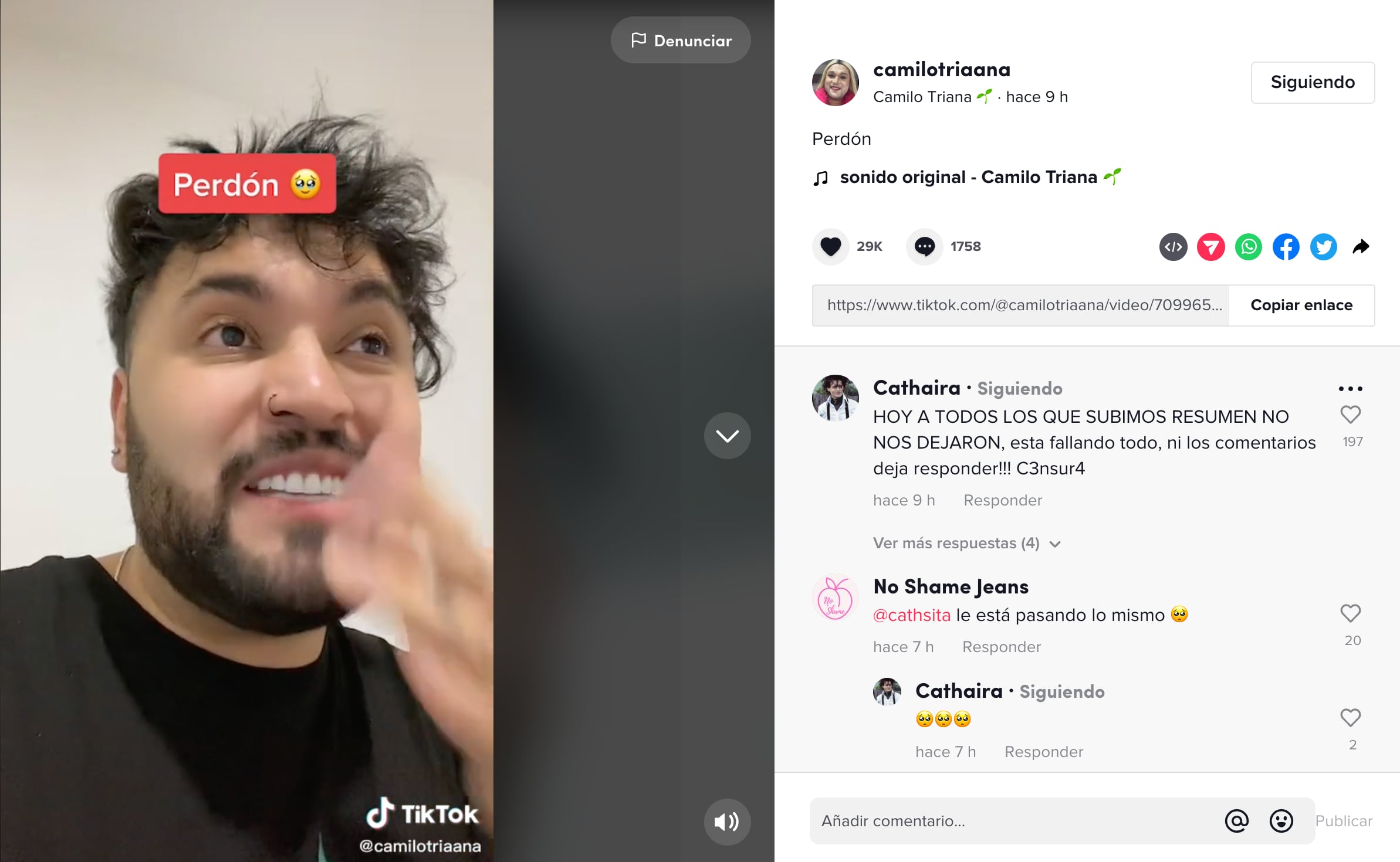 Al principio, algunos tiktokers como Camilo Triana y Vi de la Mora compartieron que la plataforma no les permitía subir videos.